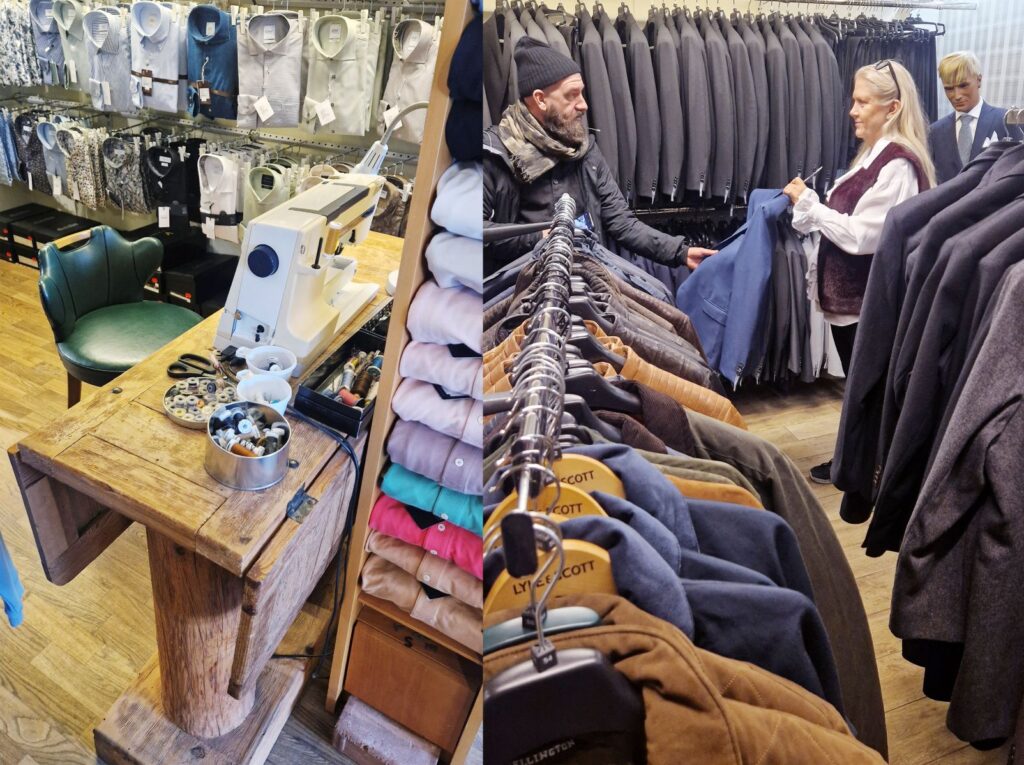 – Jag är tredje generationen. Butiken startades av min farfar. Vi erbjuder personlig service där kunderna får sina plagg justerade utan extra kostnad. Vi lagar kläder och byter ut blixtlås, berättar hon.